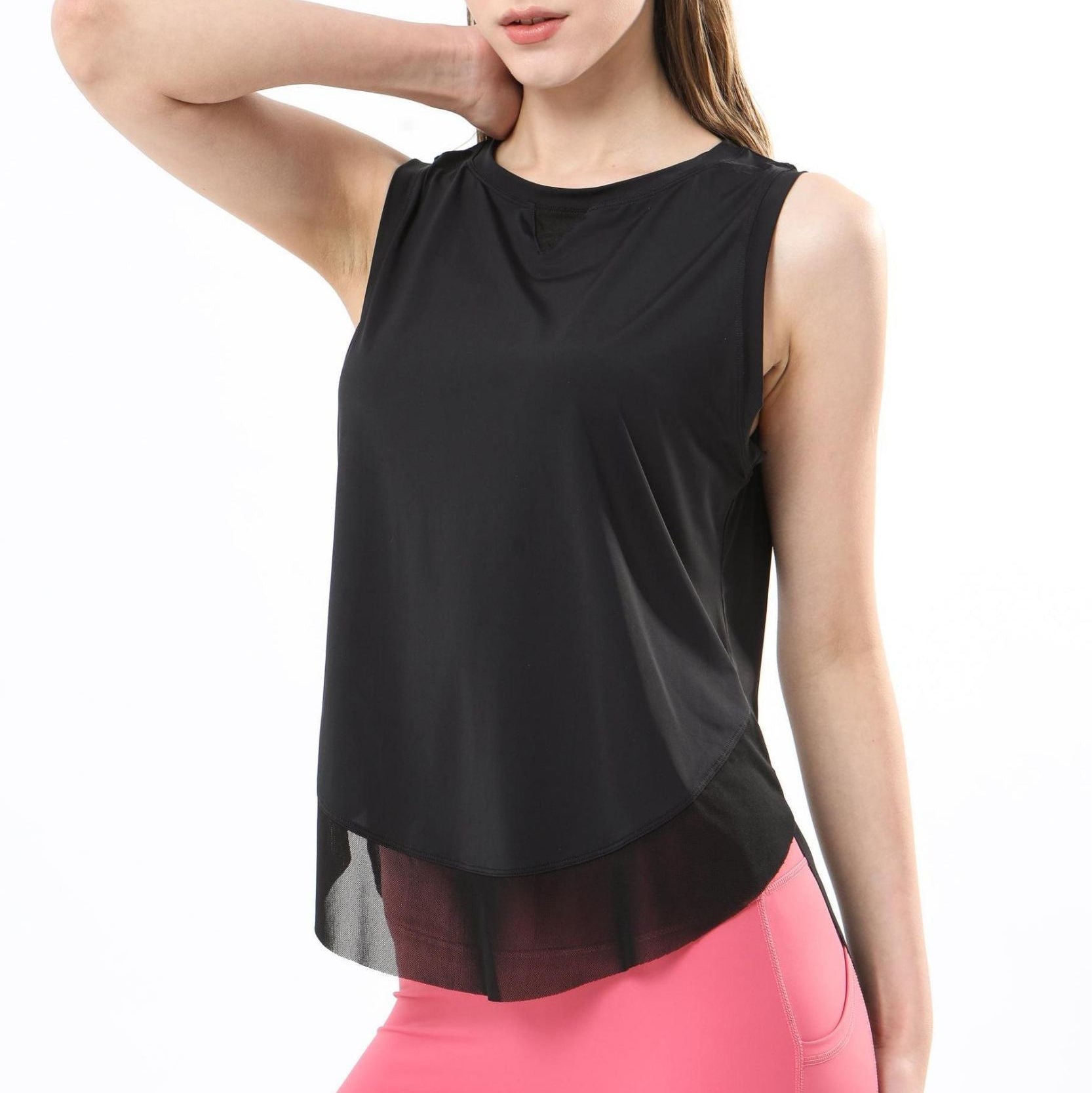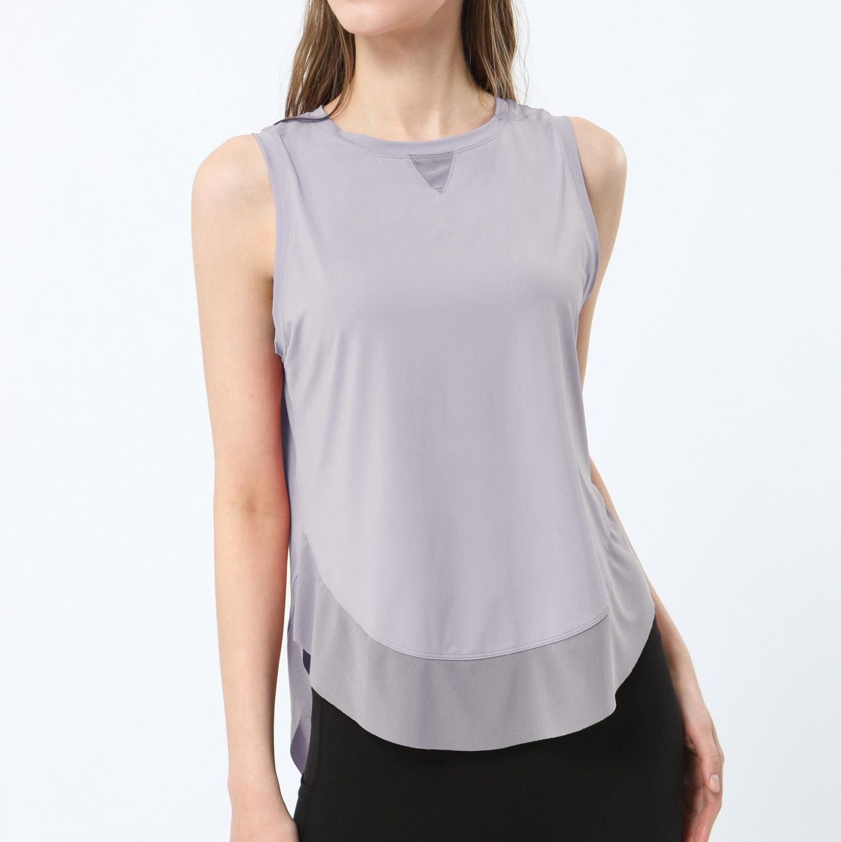 This breathable mesh panel tank top is designed for comfort and ventilation, making it ideal for workouts, yoga sessions, or everyday wear. The mesh panel adds a stylish edge while enhancing airflow to keep you cool and dry during activities. Made from soft, lightweight materials, this tank top offers easy movement and a relaxed fit that pairs effortlessly with leggings, shorts, or joggers for a complete activewear outfit.